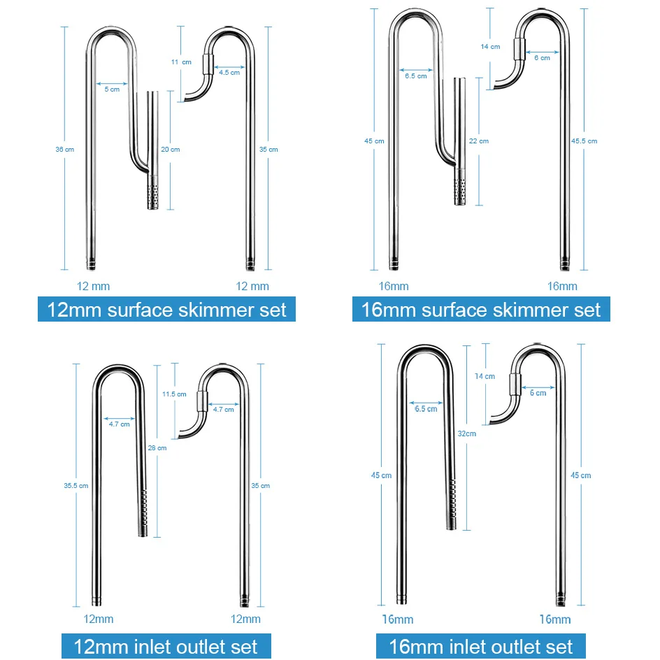 Tub de lliri d'aquari amb entrada i sortida de skimmer superficial d'acer inoxidable per a filtre d'aquari Filtre de tanc de peixos plantat